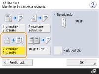 2-stransko> lahko uporabite samo papir velikosti A4.Ko uporabljate način <Knjiga