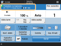 Prikazuje stanje nastavitve, kot so razmerje kopiranja, velikost papirja in število kopij. Za pravilno kopiranje potrdite nastavitve. Za spreminjanje nastavitev pritisnite gumb pod zaslonom.