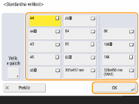 Izberite velikost papirja in pritisnite <OK>.