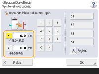 Če velikost papirja, ki jo pogosto uporabljate, registrirate za gumbe od <S1> do <S4>, jo lahko prikličete s preprostim pritiskom. Registracija papirja poljubne velikosti (papirja velikosti po meri)