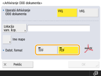 Če možnost <Arhiviranje ODD dokumenta> nastavite na <Vklj.>, neposrednega pošiljanja ne morete uporabljati.