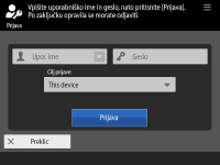 Uporabniki se s tem načinom prijavijo tako, da vnesejo uporabniško ime in geslo s tipkovnico na nadzorni plošči. Ta način je na voljo ne glede na napravo za preverjanje pristnosti.