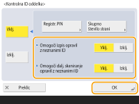 Pritisnite <Nastavitve kontrole>  <Kontrola uporabnikov>  <Kontrolna ID oddelka>.