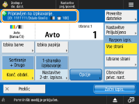 Prikazuje stanje nastavitve, kot sta velikost papirja za tiskanje in število izpisov. Za pravilno tiskanje potrdite nastavitve. Za spreminjanje nastavitev pritisnite gumb pod zaslonom. Za spremembo števila izpisov vnesite število s številskimi tipkami.