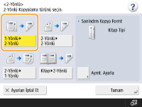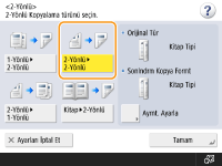 1-yönlü orijinalleri, kağıdın her iki yüzüne de kopyalayabilirsiniz. 2-yönlü bir orijinali kağıdın iki yüzüne ya da iki ayrı yaprağa kopyalayabilirsiniz.