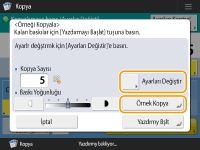Ayarları değiştirmek için <Ayarları Değiştir> seçeneğine basın. Ayarlar değiştirildikten sonra <Örnek Kopya> öğesi görüntülenir. Tekrar bir örnek kopyalayın.