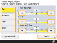 Sarı, macenta, camgöbeği ve siyahın yoğunluğunu ayrı ayrı ayarlayın.