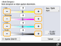 Ayarlamadan sonra en fazla dört ayarı kaydedebilirsiniz. Rengi ayarladıktan sonra <G.çağ./Kaydet>