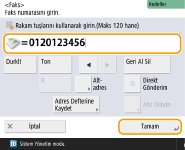 Uluslararası faks göndermek içinUluslararası erişim numarasını, ülke kodunu ve faks numarasını bu sırayla girin. Uluslararası hedef başarıyla bağlanamazsanız, bir numara ile sonraki numara arasına duraklama eklemek için <Durklt> seçeneğine basın.