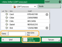 seçeneklerine bastığınızda, sırasıyla faks ve grup hedefleri görüntülenir.