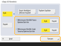 Yönetmek istediğiniz fonksiyonlar için <Kapalı> seçeneğine basın, ardından <Tamm> seçeneğine basın.