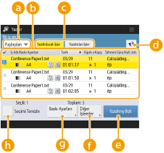 <Baskı Ayarları>/<Seçili İşler İçin Yazd. Ayarları> ayarlarını değiştirirseniz, yeni ayarların uygulandığı belge <Yazdırıldı> bölümünde görüntülenir.
