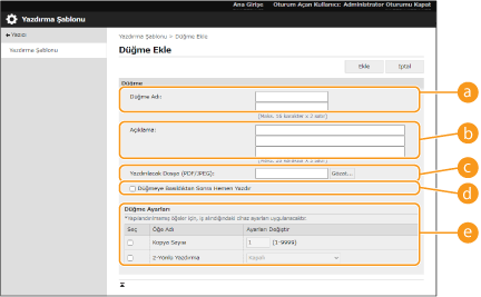 Düğme bilgilerini girin ve gerekli ayarları yapılandırın.