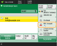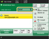 Taramadan sonra <Tek Dokunuş> ekranından bir hedef seçmek için, <Varsayılan Ekran> için <Tek Dokunuş> ayarlayın. Taranan belgelerin aynı hedefe gönderilmesi için gereken iş yükü azaltılabilir. <Varsayılan Ekran>