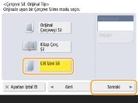 <Orijinal Boyut> bölümünde gösterilen boyut kitabın boyutundan farklıysa, boyutu seçmek için <Değiştir> seçeneğine basın. Yalnızca dokunmatik panel ekranda gösterilen orijinal boyutları taranabilir.