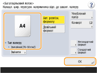 Перевірте формат і тип паперу та натисніть кнопку <OK>.