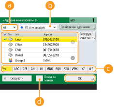 За допомогою кнопок <Реєстр. нов. адресата>, <Докл. відом./Редагувати> і <Видалити> у меню <Реєструвати/редагувати> на екрані Адресна книга (локальн.) можна зареєструвати нових адресатів, перевірити деталі, а також редагувати або видалити адресатів.