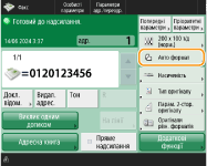 Завдання надсилання через факс/інтернет-факс: <Пріоритет якості> (<Пріоритет швидк./якості зображ. для Ч/Б сканування>)Якщо зазначено декілька телефонних лінійМожна вибрати телефонну лінію, яка використовуватиметься для надсилання факсів. Для цього натисніть <Додаткові функції>