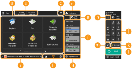 Botoi horiek gaitu egiten dizute oinarrizko funtzioen pantailak irekitzea, hala nola, "Kopiatu" eta "Eskaneatu eta bidali".