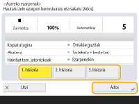 Aldez aurretik erabilitako kopiatze-ezarpenak berreskuratu ahal dituzu. Berreskuratutako ezarpenen xehetasunak aldatu ahal dituzu kopia egin baino lehenago.