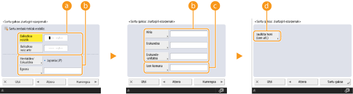 (Ezarp./Gorde) <Kudeaketa-ezarpenak> <Gailuaren kudeaketa> <Ziurtagiriaren ezarpenak> <Gakoa eta ziurtagirizerrenda> sakatzean bistaratzen den orrian. Gakoen eta ziurtagirien zerrenda ez bada bistaratzen, sakatu <Gailu hon gako- eta ziurtagiri-zerrenda> bistaratzeko.Gako eta ziurtagiri bat hautatzen badituzu eta <Ziurtagiriaren xehetasunak> sakatzen baduzu, ziurtagiriaren inguruko informazio xehatua bistaratuko da. Orri horretan, <Egiazt. ziurt.> ere sakatu dezakezu ziurtagiria baliozkoa den egiaztatzeko.
