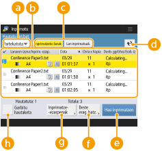 (Gelditu) saka dezakezu eta ezeztatu beharreko lana <Inprimatze-lanak>-en hautatu. Gelditu teklarekin lanak ezeztatzeari buruzko informazio gehiago jasotzeko, ikusi