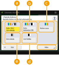 A4 tamainako original bat jartzean, sakatu <Aukerak> eskanerraren oinarrizko funtzioen pantailan