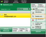 <Jatorrizko edukiaren orient.> hautatu <Goian urruneko ertzean> edo <Goian alboko ertzean> jatorrizkoaren orientazioaren arabera sakatu <Ados>.Adierazi faxak dauzkaten zenbait helmuga<Gaitu faxa eskaneatu eta bidali funtzioan> aukeran <Bai> ezartzeak eskanerraren oinarrizko funtzioen pantailatik fax-helmugak zehaztea ahalbidetzen dizu (<Bistaratu fax-funtzioa>). Ezarpen hau erabilgarria hau hainbat helmuga zehazteko, faxak barne, adibidez fitxategi-zerbitzari batean bidalitako fax baten kopia bat gordetzean.