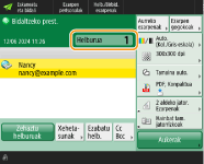 Helmuga bat hautatzeko <Ukitu bakarra> pantailatik eskaneatu ostean, ezarri <Ukitu bakarra> <Pantaila lehenetsia> aukeran. Helmuga berera eskaneatutako dokumentuak bidaltzeko beharrezkoa den lana murritz daiteke. <Pantaila lehenetsia>
