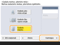 <Jatorrizko tamaina>-(e)an bistaratutako tamaina eta originalaren tamaina desberdinak badira, sakatu <Aldatu> tamaina hautatzeko. Ukipen-pantailan bistaratutako originalen tamainak eskanea daitezke soilik.