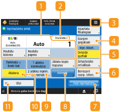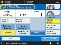 Ezarpenen egoera bistaratzen du, adibidez, inprimatzeko paper-tamaina eta kopia kopurua. Ziurtatu ezarpenak baieztatu dituzula behar bezala inprimatzeko. Ezarpenak aldatzeko, sakatu bistaratze-sekzioaren azpiko botoia. Kopia kopurua aldatzeko, sartu kopurua zenbaki-teklak erabiliz.