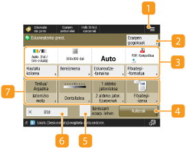 Eskaneatzearen kolore-modua hauta dezakezu honako hau sakatuz: <Hautatu kolorea>. Honako eskaneatze-ezarpen hauek ere hauta ditzakezu.