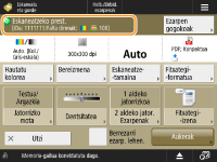 <Etxea> pantailan <Eskaneatu eta gorde> sakatzen baduzu, eta gero <Sarea> edo <Memoria-gailua> sakatzen baduzu originalak eskaneatzeko, hurrengo ezarpen-pantaila bistaratzen da.