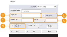 אם תבחר <Windows (SMB)>, יוצגו הלחצנים <חיפוש במארח> ו-<עיון>. ניתן לציין בקלות שרת קבצים/סביבה מתקדמת באמצעות חיפוש או הצגת הרשת.