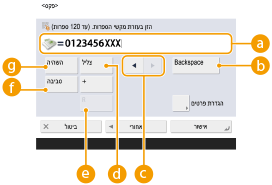 ניתן לרשום שמות תחום הנמצאים בשימוש תכוף ב-<תווים מתוכנתים> במקלדת, וניתן לאחזר אותם כאשר מזינים כתובת I-fax. <תווים מתוכנתים עבור מקלדת>
