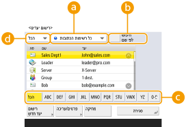קבע את התצורה של רשימות כתובות של קבוצות משתמשים מממשק המשתמש המרוחק. (רישום יעדים באמצעות ממשק המשתמש המרוחק)