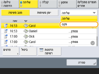 (עצור) כדי להציג את המסך לבחירת המשימה בשליחה שיש לבטל. אם המשימה הנמצאת בשליחה אינה מוצגת, לחץ על <בדוק משימות אחרות> כדי להציג את <שלח עבודות>. בחר את המשימה שברצונך לבטל ולחץ על <ביטול>. |