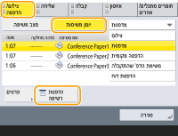 ניתן להדפיס רשימה של היעדים הרשומים תחת 'פנקס הכתובות' או בלחצני נגיעה אחת.