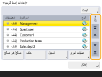في الجزء السفلي الأيمن لعرض شاشة الإعداد. عند إجراء الإعداد، تُعرض حالة الإعداد في القسم العلوي من الزر ويتغير لون القسم السفلي.