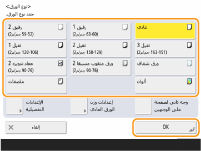 <OK>. تسجيل حجم ونوع الورق المستخدم بشكل متكرر للدرج متعدد الأغراض