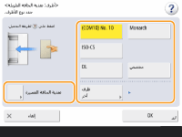 الزر الذي تم تسجيل نوع ورق الظرف عليه <OK>. تسجيل حجم ونوع الورق المستخدم بشكل متكرر للدرج متعدد الأغراض |