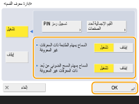 حدد <إيقاف> للوظائف التي تريد إدارتها، ثم اضغط على <موافق>.