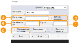 Ако изберете <FTP> за протокол, въведете <Име на хост>, както следва.