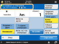 Показва състоянието на настройките, като напр. размер на хартията за печат и броя разпечатки. Уверете се, че сте потвърдили настройките, за да отпечатате правилно. За да промените настройките, натиснете бутона под секцията за показване. За да промените броя разпечатки, въведете броя чрез бутоните с цифри.