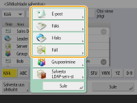 Kui seadmesse on juba salvestatud LDAP-server (LDAP-serveri salvestamine), saate otsida sihtkohti ja salvestada need aadressraamatusse. Vajutage <Sihtk./edast. seaded>