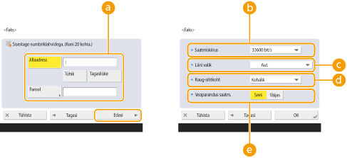 Teavet aadressiraamatusse salvestatud sihtkohtade teabe muutmise või kustutamise kohta lugege teemast Aadressiraamatusse salvestatud sihtkohtade redigeerimine.