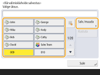 Teavet lühivalikunuppude alla salvestatud sihtkohtade teabe muutmise või kustutamise kohta lugege teemast Lühivalikunuppude alla salvestatud sihtkohtade redigeerimine.