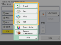 Kui seadmesse on juba salvestatud LDAP-server (LDAP-serveri salvestamine), saate otsida sihtkohti ja salvestada need lühivalikunuppude alla. Vajutage <Sihtk./edast. seaded>