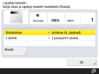 Isegi siis, kui <Paberiallika automaatne valimine> valikuks on <Sees> paberiallika jaoks, võib sõltuvalt paberi tüübist automaatne paberi valik mitte toimuda. Kasutamaks paberit, mis on laetud paberikassetti, millest automaatset paberi valikut ei saa läbi viia, määrake paberikassett käsitsi. |