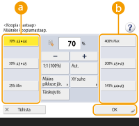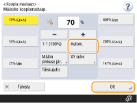 Kui valite seade <Aut.>, siis peate paberiformaadi käsitsi määrama. Kui te ei vali paberiformaati, siis määrab seade automaatselt vastavalt paberikassetti 1 asetatud paberi formaadile sobiva koopiamastaabi.